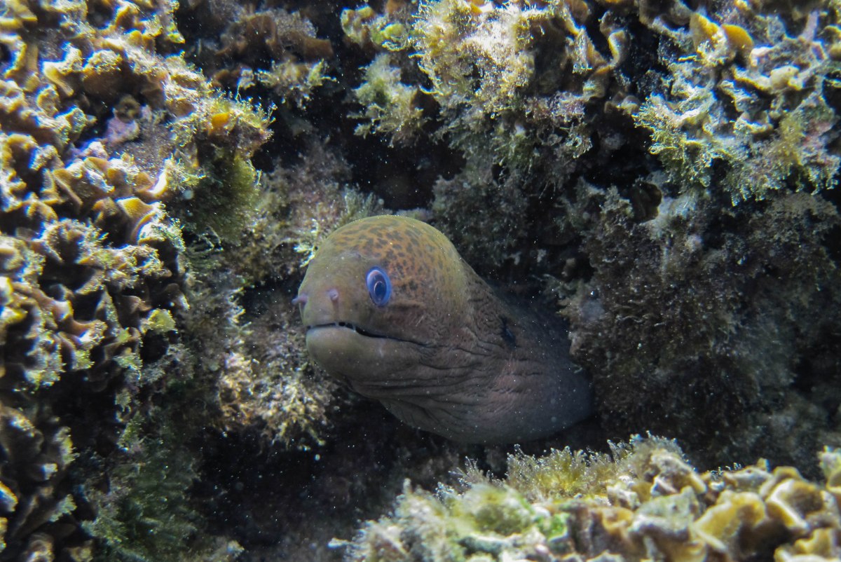 CP COTS-4 Published May 4, 2015 at 3499 × 2340 in Mass COT murdering today… Coconut Point ~ American Samoa ← Previous Next → This eel kept a close watch on us from several areas of his rock mansion.