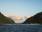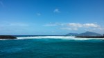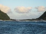 - View to Olosega from Ta’u wharf. The waves were breaking into the channel pretty impressively.