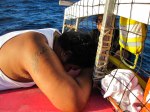 Our real adventure turns out to be getting ourselves and our supplies from Ta’u island across to Ofu. The ferry is broken, the interisland ferry is on Tutuila for service, the seas are rough… Only one alia captain is willing to make the journey, so we wait all day for them to arrive. Cell phones don’t really work in most places on Manu’a, so you just have to get ready and wait! We were told not before 10 am, so we get to the wharf at 10. We thought we were waiting for a big alia… I guess it is all relative. We successfully made the passage, though it seemed not possible at first. We were dragging SO slowly… Then once we headed downwind and catching surf, it was much faster.