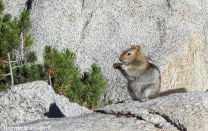 We saw zero people all day, and took time to enjoy the sun and the views. We passed by several large den areas (probably for marmots) and saw and heard lots of birds, chipmunks, and squirrels. And yes, much to Tim’s dismay (and humor), I still say ‘squirr-rel’ every time I see them!