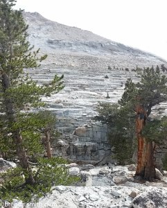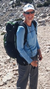 Today is summit day! We have high clouds in the morning, then it is partly cloudy, windy, and cold all day. UP and UP the switchbacks. We saw several people on the way up, going both ways. One fit guy in his 20s had been surfing in San Diego the day before. He was planning to do the JMT in 14 days between finishing his old job and starting his new job. He had a 65 pound pack complete with a gopro helmet cam and a pop-up tent. I wonder how he fared….