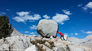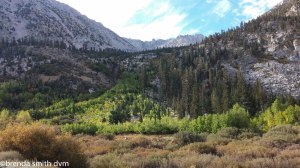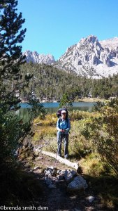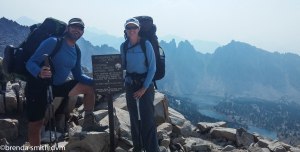 Mike and Andy hopscotch with me as we are nearing the pass. Mike is 75 and hikes Kearsarge Pass once every year. Andy seems to be his grandson. It used to be Mike’s favorite day-hike when he lived in the area, but now he lives in Thousand Oaks and just comes annually. It sounds like he manages to connive a family member into accompanying him each year, as he had stories about an engagement at the top that he witnessed with his niece a year or two before. Tim has gone ahead of me, as it is super hard to walk a pace that is too slow for you (and I am going too slow for anyone to follow!). I’m about 2 big switchbacks from the pass when he reappears coming down to help me ~ trying to be my knight in shining armor! At least a knight with a fairly empty pack. He figured I was still much further down, and was going to carry my stuff up for me. Since it isn’t far, we just switch packs which is hysterical because even though I am not much shorter than he, his pack fits me like a minidress!