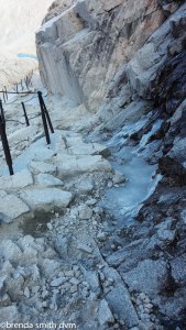 The saddest part is the disrespect that people have for such an amazing place. Tim was poking with his hiking pole at several of the gray bags laying about or tucked under rocks. When I warned him to leave them alone… he hadn’t realized they were all poop! There is no vegetation in the area, so all human waste must be packed out. Gray bags are dispensed, and obviously used, but then people just leave them. There was also a good deal of human urine and even feces in many places along the trail. Seriously people? You are disgusting. We were both amazed, especially since it takes quite a bit of effort to get here.