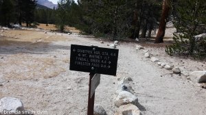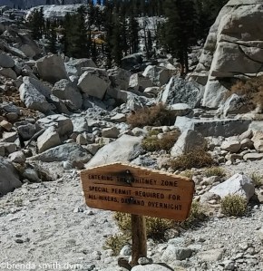 I left early to get started on our 10 mile day. Tim is much stronger than I am now, and walks a lot faster, so I let him take over the task of filtering water at all our breaks. Not too exciting for him, but more efficient use of our time. The filter is leaking horribly now, so takes even longer than it should… So we did that all day, taking breaks together but walking separately. Oddly, whenever I walk by myself, I find my mind wandering to my late husband and our marriage and wonder if I need to write a book to get it all down and out of my head. Regardless, the last few miles Tim and I walked together. We met 2 guys hiking the High Sierra Trail. One likes to make all his own lightweight backpacking gear – tarps and quilts and even slippers! They have hiked in the Sierras together for years, but stick to the trails after one outing when they tried to explore… and I guess must have had some mishaps! This day they had day-hiked Mt Whitney and were headed back down to their base camp. We saw no other people until we set up camp at Guitar Lake, where there were 4 girls resting along the shore. A few more passed by a bit later but continued on.