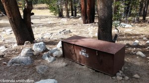 We stop to reload Tim’s pack, and chat for a bit with a girl heading down to resupply. She has been doing the PCT since starting at the end of June at Snoqualamie Pass near Seattle. She is hiking with four friends who started at the Canadian border, skipping about 150 miles for smoke from the wildfires in Washington. Her favorite part so far was the wildflowers at Goat Rocks! She asks about hitching from Onion Valley… lamenting about how having guys with her really lessens her ability to get rides! They are planning to go the end of the trail at the Mexican border.