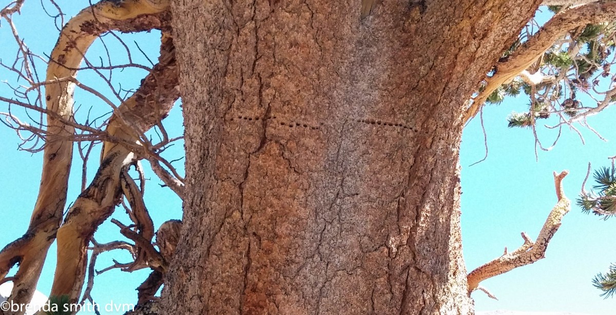 Whitney section-80 Published October 27, 2015 at 2340 × 1198 in Backpacking the Sierra Nevada ~ The John Muir Trail and Mt Whitney ~ California ← Previous Next → Woodpecker holes (we think!)