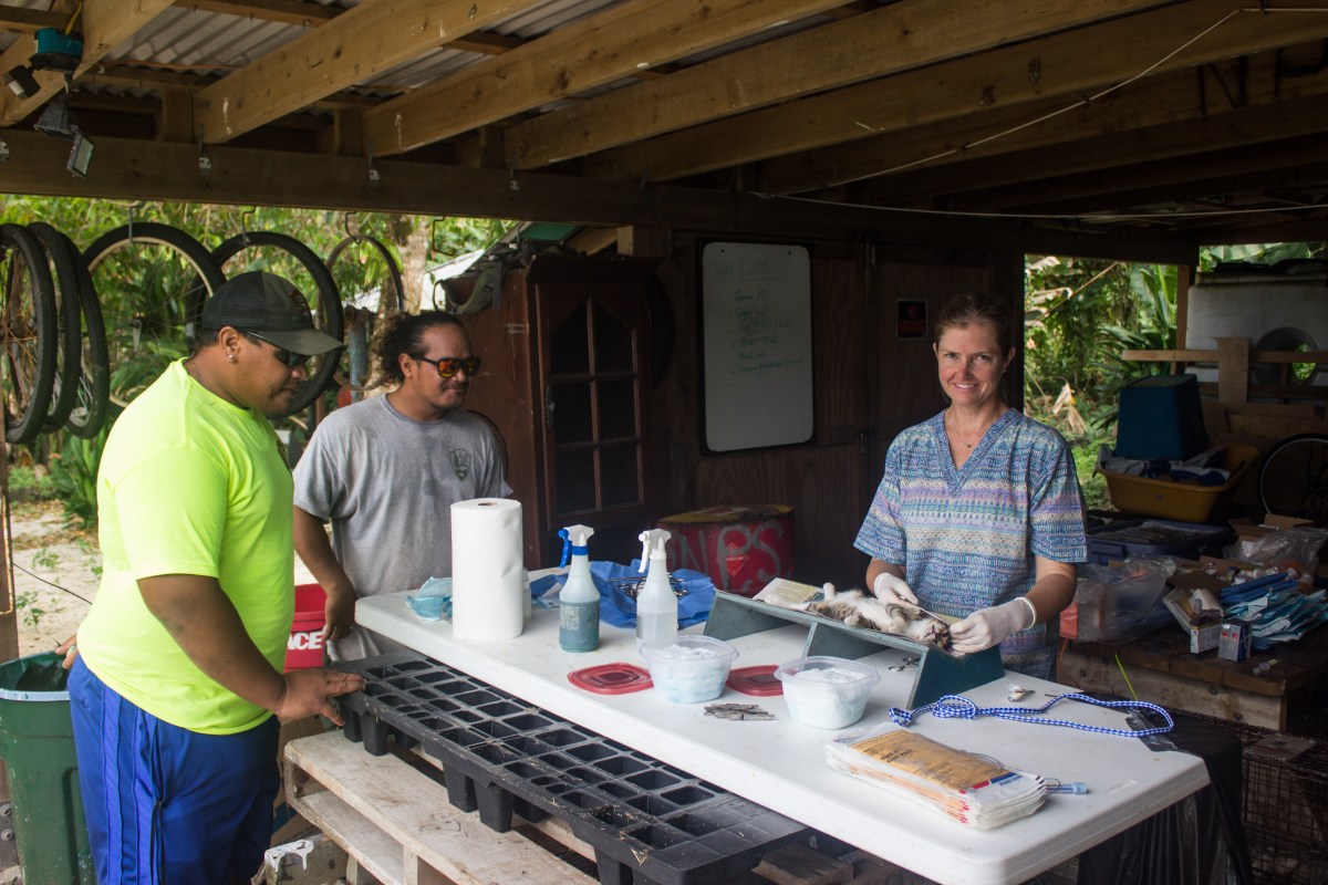 vet work-1 Published November 24, 2015 at 5184 × 3456 in Veterinary Work on Ofu ~ Manu’a ~ American Samoa ← Previous Next → John and Ricky are my NPS helpers for the day. I think they learned a little about TNR.