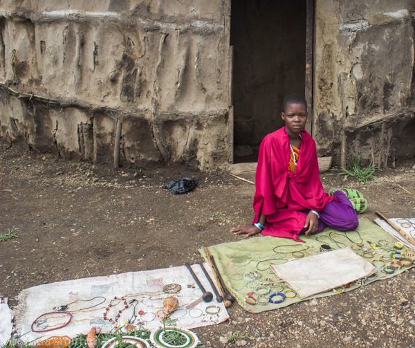IMG_5804 Published February 7, 2016 at 600 × 503 in A Maasai Village ~ Tanzania ← Previous Next → Bead selling in front of the huts