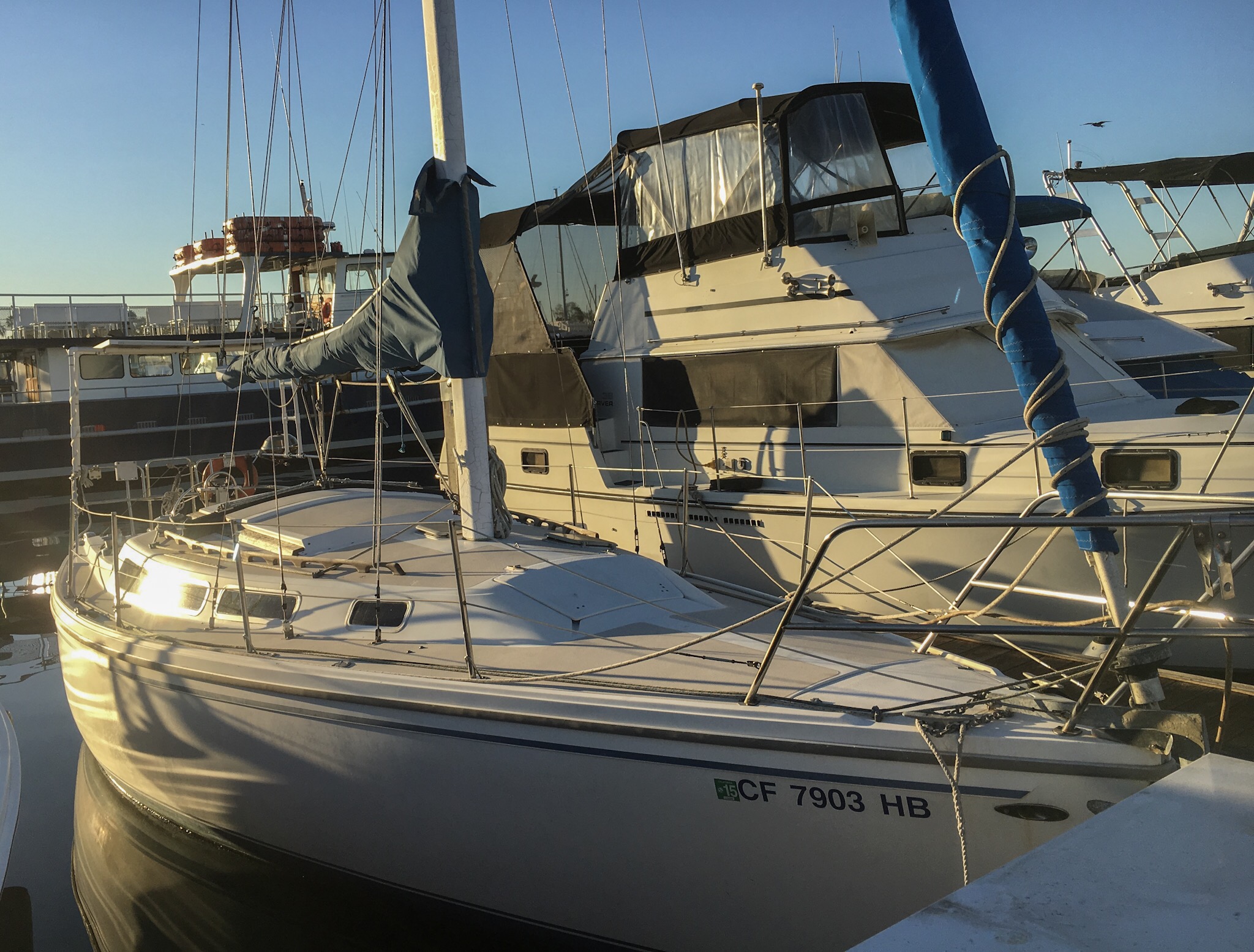 That was my first night on the boat, I had been staying with friends in Oceanside. Early in the morning I was woken up by a loudspeaker voice announcing that it was going to be rough and that for safety everyone should come up to the office or something like that. I was completely confused, but there was no rocking so I waited. In a few more minutes a realized that it was the loudspeaker on a fishing boat that was leaving with a passel of tourists. Ah. But now I’m awake and it is almost six, so up I get to check on the car situation.